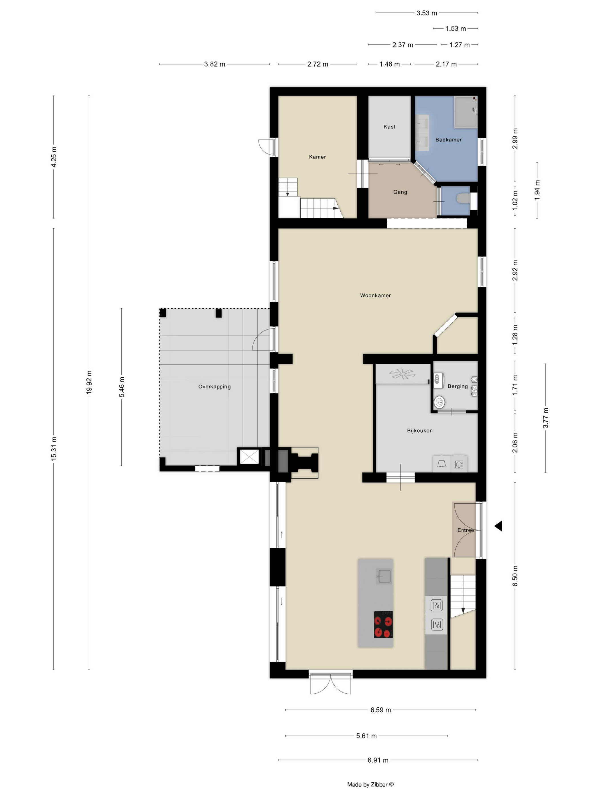 Stap binnen in een stijlvolle, open leefruimte met natuurlijke lichtinval en directe verbinding naar de tuin. De indrukwekkende keuken is een echte eyecatcher, uitgerust met o.a. een stoomoven, kookplaat met geïntegreerde afzuiging, wijnkoeler, veel kastruimte en een groot eiland — ideaal voor wie houdt van koken en gezellig samen zijn.